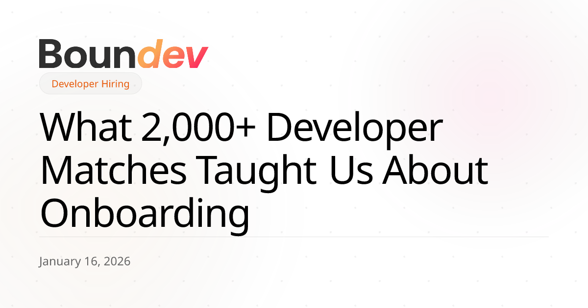 After 2,000+ developer matches since 2015, the data is clear: onboarding determines project success more than vetting. Even "dream matches" fail without proper setup. The five most expensive fails—leadership changes, mindset mismatch, self-management gaps, team fit issues, and no technical owner—all stem from onboarding shortcuts.