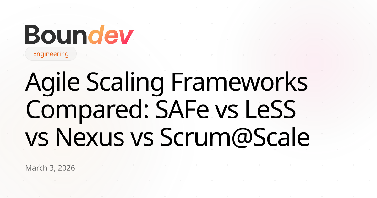 At Boundev, we've helped 200+ companies select and implement agile scaling frameworks. The decision depends on your team size, product complexity, organizational culture, and how much process your teams can absorb without slowing down. This guide compares the four leading frameworks head-to-head.