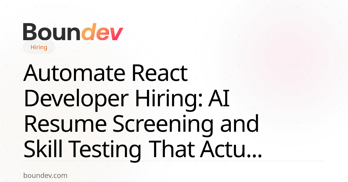 At Boundev, we've screened over 14,500 React developer candidates in the past three years. Our technical screening includes AI-assisted resume parsing, automated skill assessments, and structured human evaluation—and the combination consistently outperforms any single method alone. This guide breaks down exactly how AI hiring tools work for React roles, which ones deliver real results, and how to build a screening pipeline that scales without sacrificing quality.