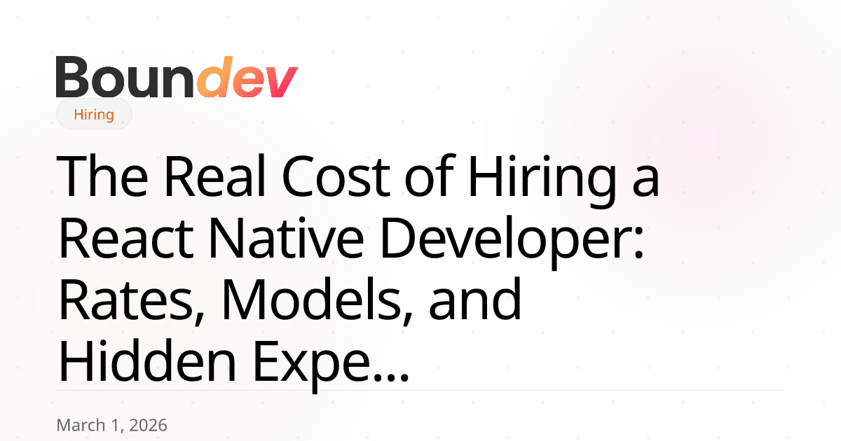At Boundev, we place React Native developers into product teams through staff augmentation — and we've mapped the true cost landscape across 200+ placements. This guide breaks down exactly what you should expect to pay, the hidden costs most teams miss, and the specific strategies that reduce your spend without compromising app quality.
