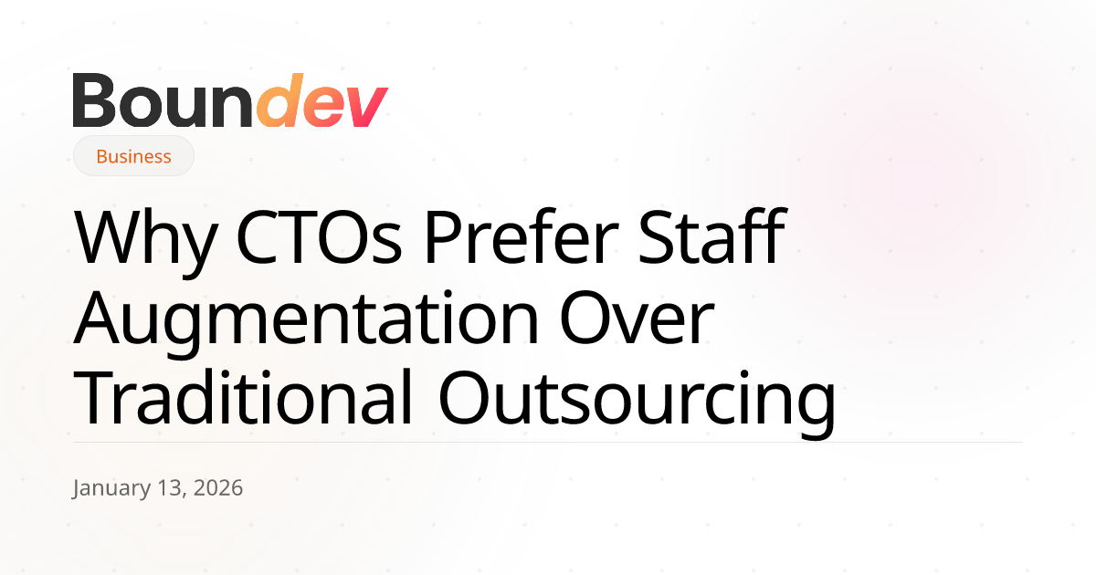 CTOs prefer staff augmentation for direct control, rapid scalability (1-4 weeks), cost efficiency (no benefits/overhead), global talent access, and cultural integration. It provides flexibility to pivot as technology stacks evolve monthly.