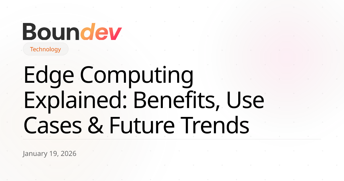At Boundev, we help businesses implement edge computing solutions that boost speed, agility, and operational intelligence. This guide covers what edge computing is, its key benefits, industry use cases, and where the technology is heading.