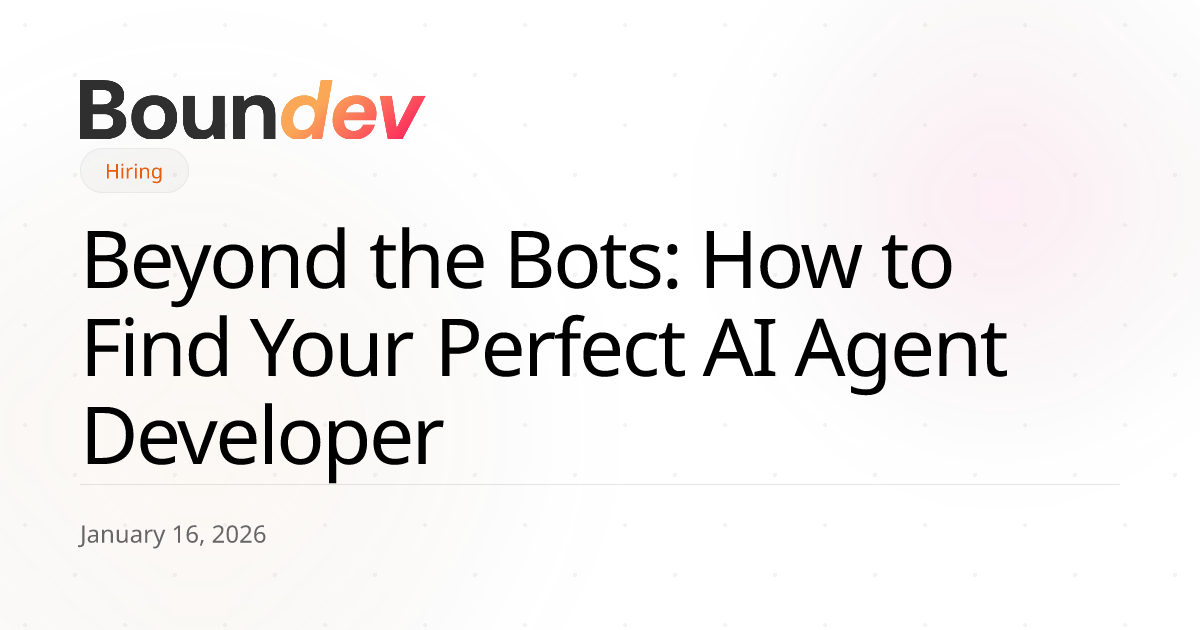 Finding the right AI agent developer doesn't have to feel overwhelming. With the right approach, you can land the talent that will transform your business. Check out our complete hiring guide for more strategies.