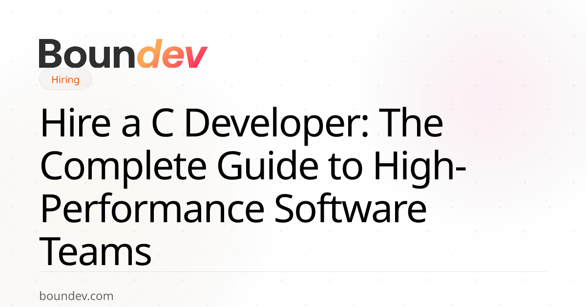 Look for portfolios demonstrating production-level experience with performance-critical applications—not academic projects. Request technical assessments covering memory management, concurrency, and debugging scenarios. Evaluate toolchain knowledge (GDB, Valgrind, CMake) alongside language proficiency. Alternatively, work with a specialized engineering partner like Boundev, which pre-screens C developers for domain-specific expertise (embedded, networking, real-time systems) and places them through staff augmentation or dedicated team models within 5 business days.