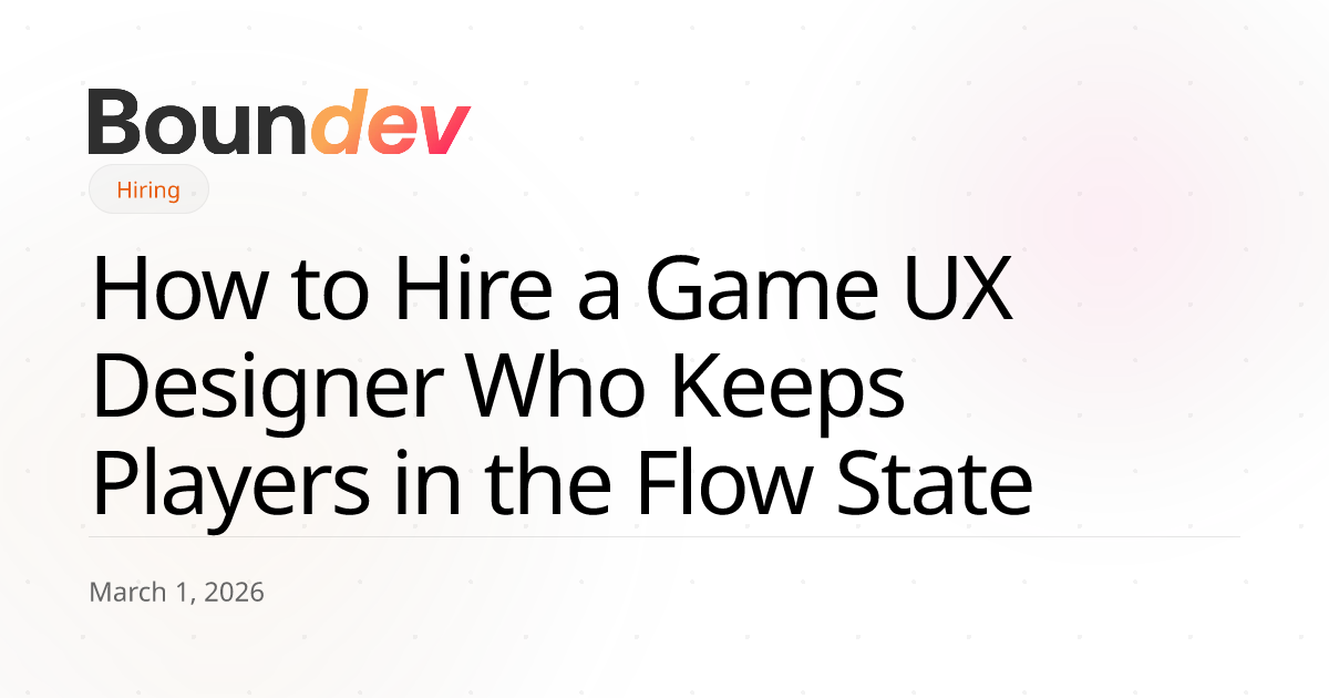 At Boundev, we place game development talent — including UX designers — through staff augmentation. We've learned that the gap between a generic UI designer and a true game UX specialist is enormous. This guide breaks down what makes game UX unique, the skills you should screen for, and how to evaluate portfolios that prove a designer can keep players in the flow state.
