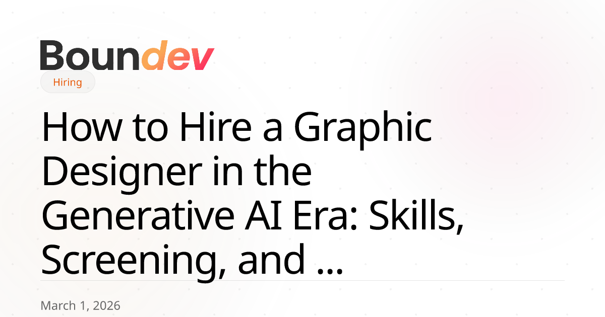 Three skill layers: traditional design mastery (Adobe Creative Suite, Figma, typography, layout systems), AI tool proficiency (prompt engineering in DALL-E/MidJourney/Firefly, output refinement, workflow integration), and strategic skills (brand storytelling, cross-functional collaboration, design rationale communication). At Boundev, we screen across all three layers through practical exercises, not just portfolio reviews.