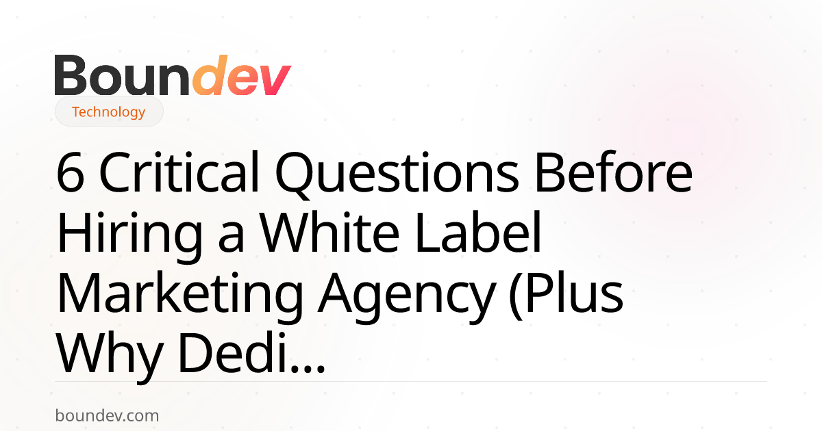 At Boundev, we provide dedicated development and marketing teams as an alternative to white label partnerships. The agencies that succeed with white label models ask the right questions before committing. The agencies that fail assume all white label providers are equal—then lose clients when quality and responsiveness collapse. This guide covers the 6 non-negotiable evaluation criteria for white label agencies—and why dedicated teams eliminate white label risks entirely.