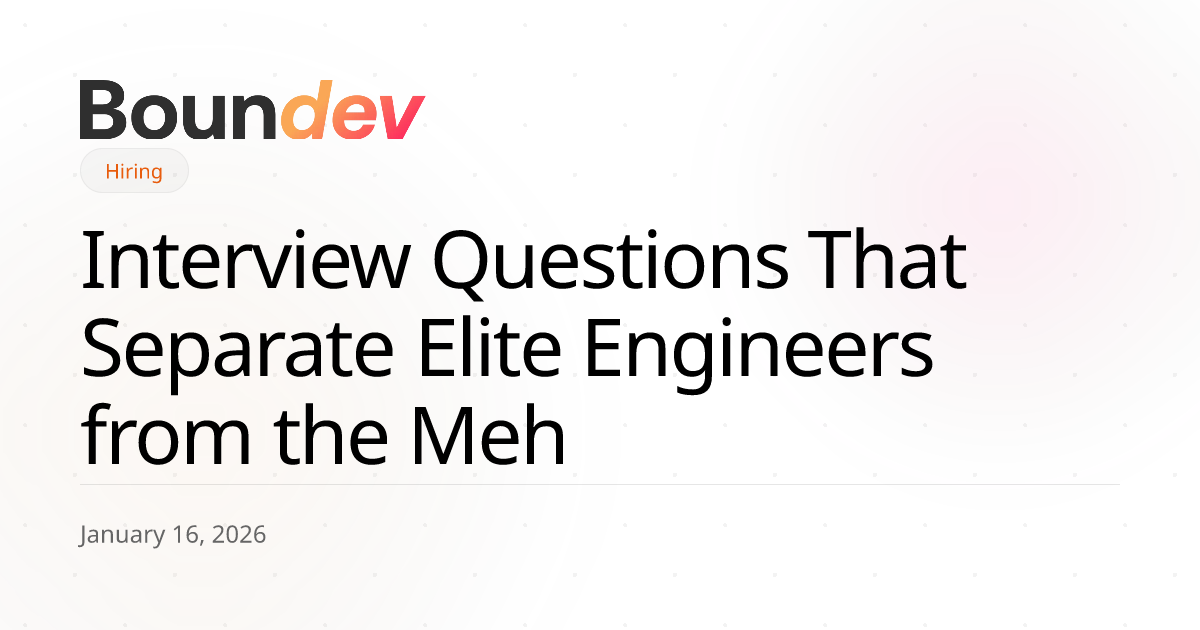 Still asking candidates to reverse a binary tree or solve LeetCode mediums? There's a better way. Elite engineering leaders design interview questions that expose what GitHub profiles can't—how developers think when there's no Stack Overflow or Copilot to save them.