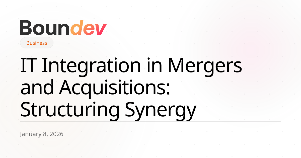 At Boundev, we help organizations navigate the technical complexities of M&A. This guide covers the four pillars of successful IT integration and the strategies that transform potential chaos into competitive advantage.