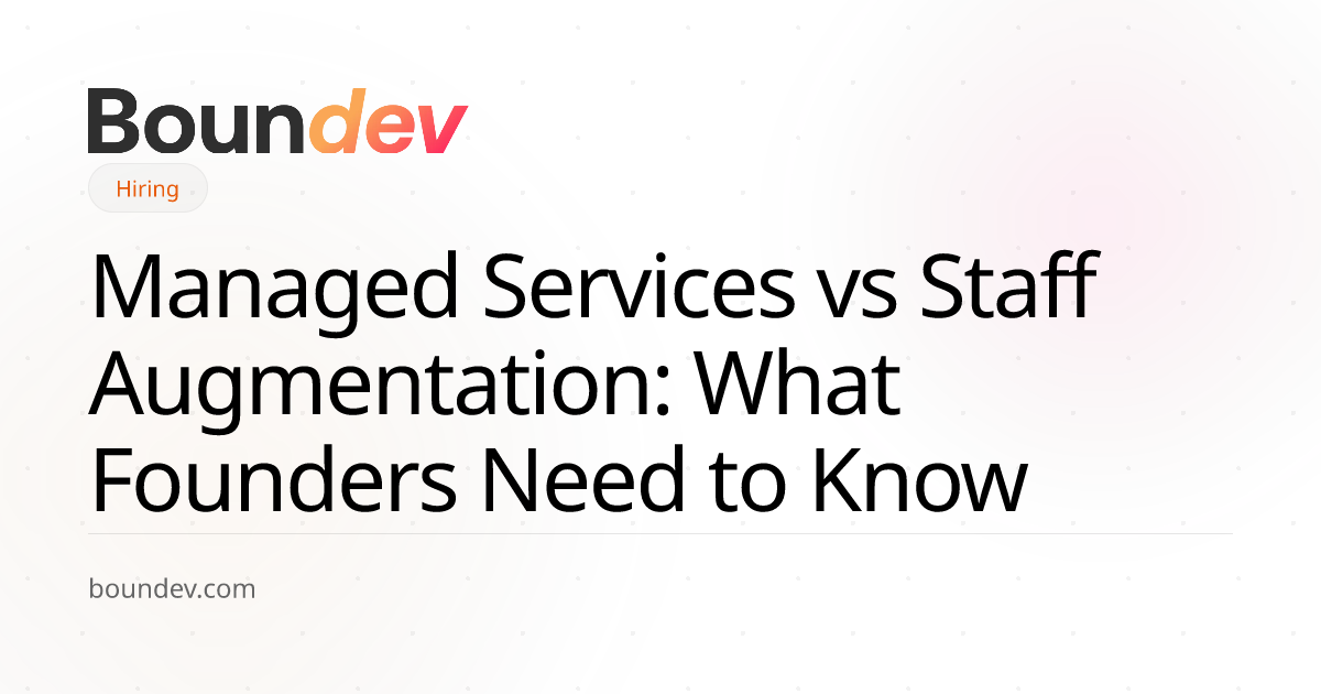 We have sat across the table from dozens of founders at Boundev who made this decision — some got it right, some learned the hard way. This guide is built from those conversations. No fluff. No vendor spin. Just the real trade-offs between managed services and staff augmentation, and how to pick the one that protects your product.