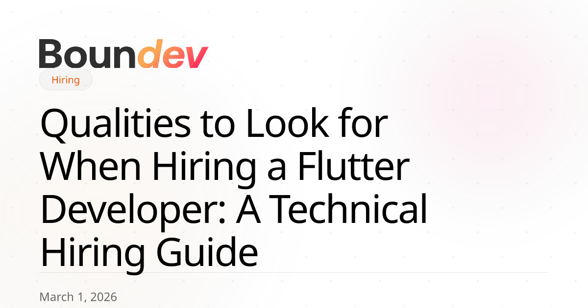 Boundev's technical screening evaluates all 10 qualities covered in this guide—Dart proficiency, state management patterns, platform channel expertise, and more. We match you with Flutter developers who've shipped production apps, not tutorial projects.