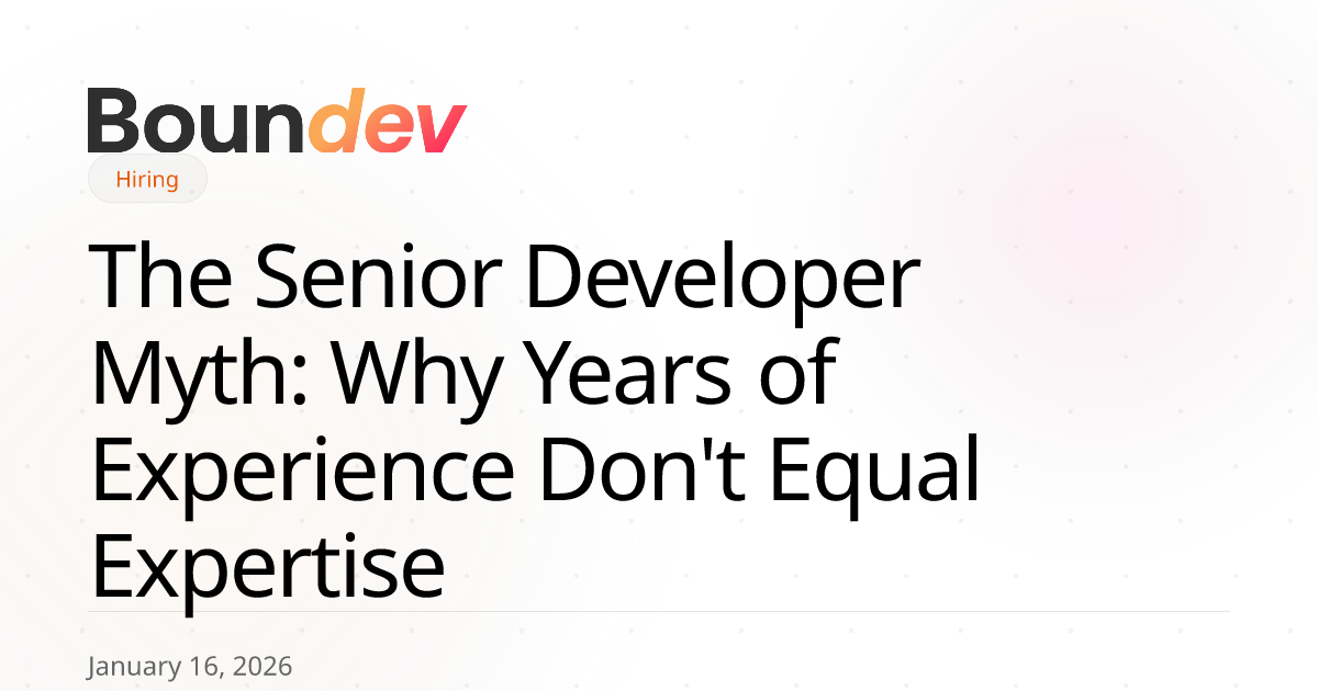 Sadly, you're not alone. At Boundev, we've conducted thousands of technical interviews through our rigorous vetting process, and quickly discovered that years of experience are often the least reliable predictor of actual expertise. It's why our vetting process rejects 98.8% of applicants—many with impressive resumes and lengthy careers.
