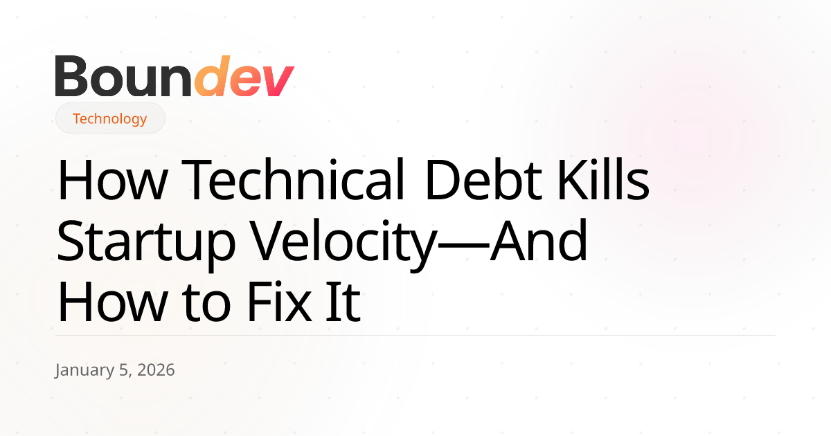 At Boundev, we help startups break free from the tech debt trap while maintaining the speed they need to compete. This guide covers why technical debt hurts growth, how to identify the biggest problem areas, and strategies to fix them without grinding development to a halt.