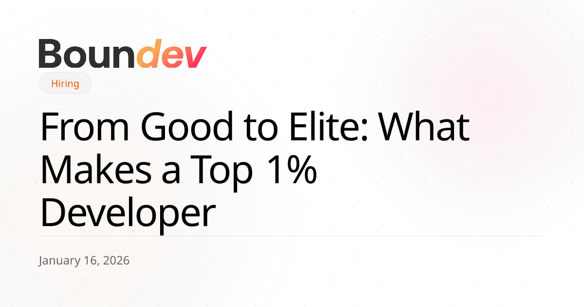 At Boundev, where only 1.2% of developers make the cut, we've uncovered patterns that separate truly elite developers from those who merely interview well. It's not about years of experience or prestigious employers—it's about a unique combination of technical depth, problem-solving ability, and professional maturity.