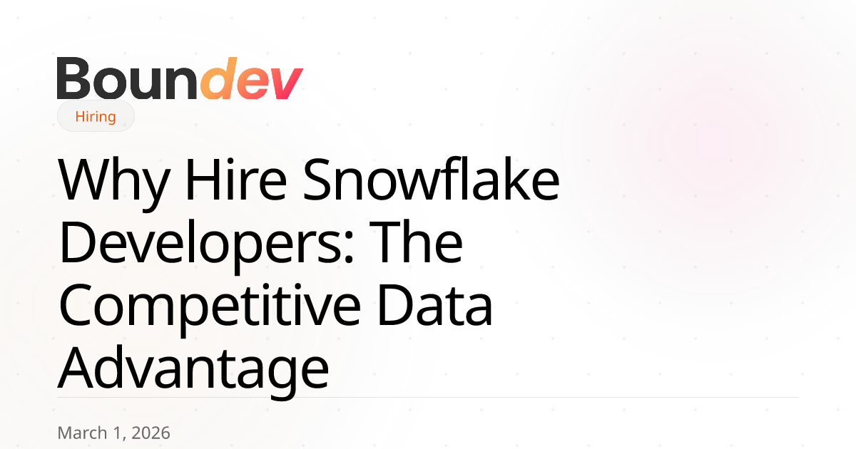 At Boundev, we've seen the demand for Snowflake engineering talent accelerate faster than almost any other data specialization. Companies building real-time analytics pipelines, multi-cloud data architectures, and AI-ready data infrastructure all converge on the same platform—and they all need developers who understand Snowflake's unique architecture deeply enough to optimize performance, control costs, and scale without breaking things. This guide covers what Snowflake actually does differently, which skills matter most, and how to structure your hiring process to find production-ready talent.