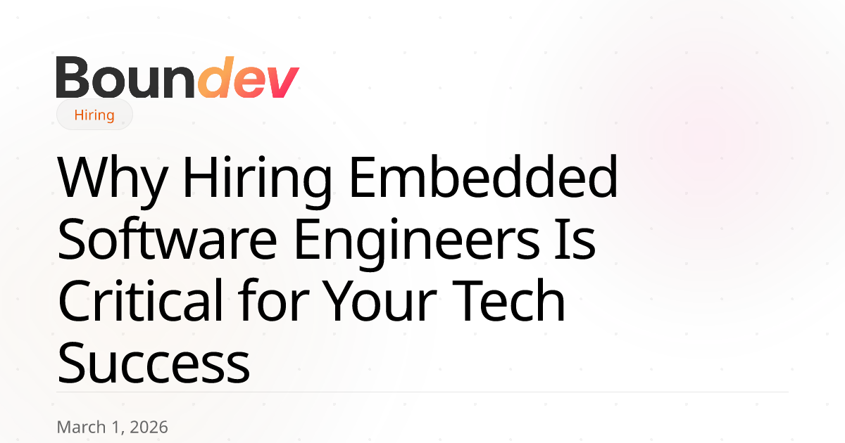 At Boundev, we've seen a dramatic increase in demand for embedded engineering talent. Companies building IoT products, medical devices, automotive systems, and industrial automation are discovering that general software developers—however talented—can't bridge the gap between hardware and software. This guide covers what makes embedded engineers unique, which skills matter most, and how to structure your hiring process to find the right talent.